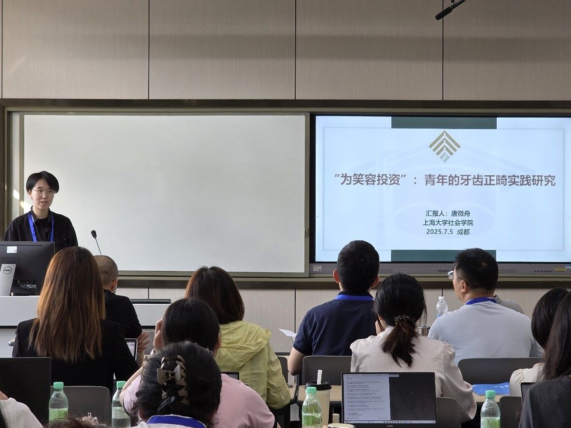 2025年7月4日-6日,2023级社会学硕士研究生唐微舟参加中国社会学会2025学术年会,并在“数智时代的消费社会学研究”分论坛上作题为《为笑容投资:青年的牙齿正畸实践研究》的论文汇报。