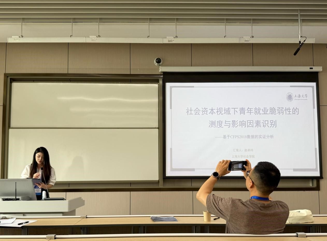 2025年7月6日,2024级社会学研究生赵卓祎参加中国社会学会 2025 年学术年会,在技术、劳动和社会论坛上进行了以《社会资本视域下青年就业脆弱性的测度与影响因素识别——基于CFPS2018数据的实证分析》为题的论文汇报。