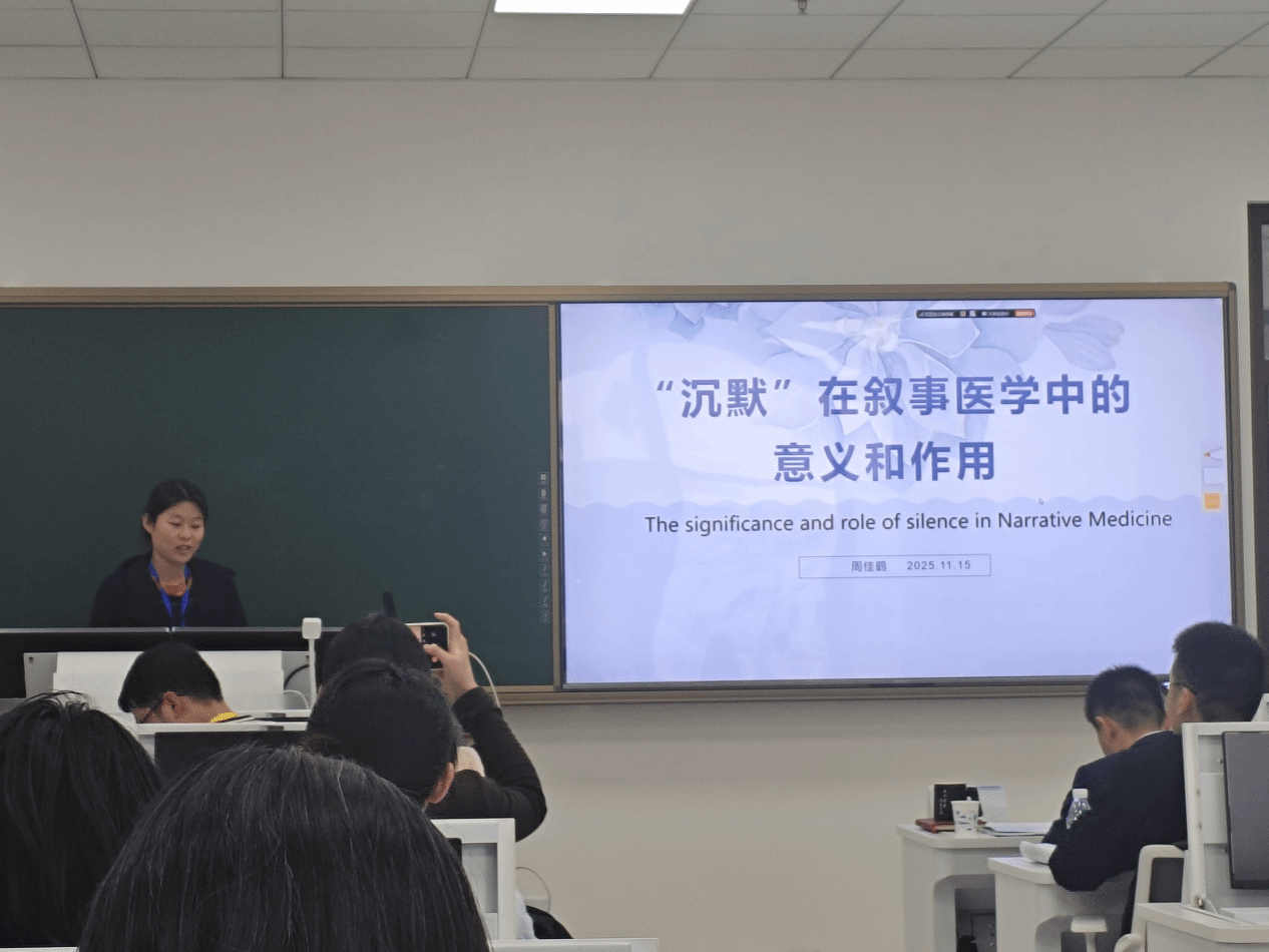 11月15日下午,周佳鹤以题目《沉默在叙事医学中的意义与作用》(The significance and Role of Silence in Narrative Medicine)进行汇报,其研究缘起于她作为安宁疗护志愿者时,因患者沉默、语言不通陷入困境,进而思考沉默的意义、成因及回应方式。在沉默成因上,患者层面包括生理疾痛导致的不可言说、心理上的叙事耗竭与闭锁及文化影响,照护者层面则有医护的职业耗竭与言语无力感、家属的文化压力与角色冲突、志愿者的 “局外人” 尴尬等,并总结出沉默叙事的三个特点:关系性、伦理性和文化性。结语强调沉默是深刻的无声叙事,叙事医学应突破语言局限,通过关注沉默建立超越语言的归属关系。(周佳鹤供稿)