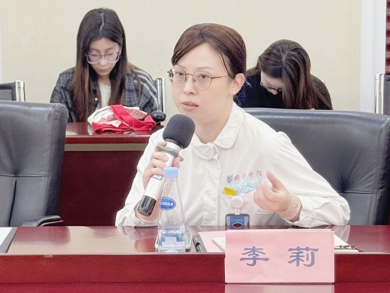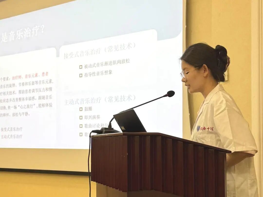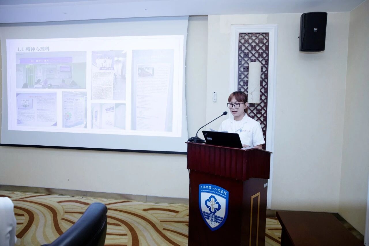 实习分享环节则生动展现了理论落地实践的成果。上海大学社工系实习生李怡琳分享了在十院进行音乐治疗实习的心得与感悟。宣嘉雯同学讲述了她在心内科病房和导管室术前陪伴的实习故事,传递了社工服务的温度。黄波涛与罗雨晗同学分享了精神心理科的实习经历,展现了实习生的成长心路和专业收获。