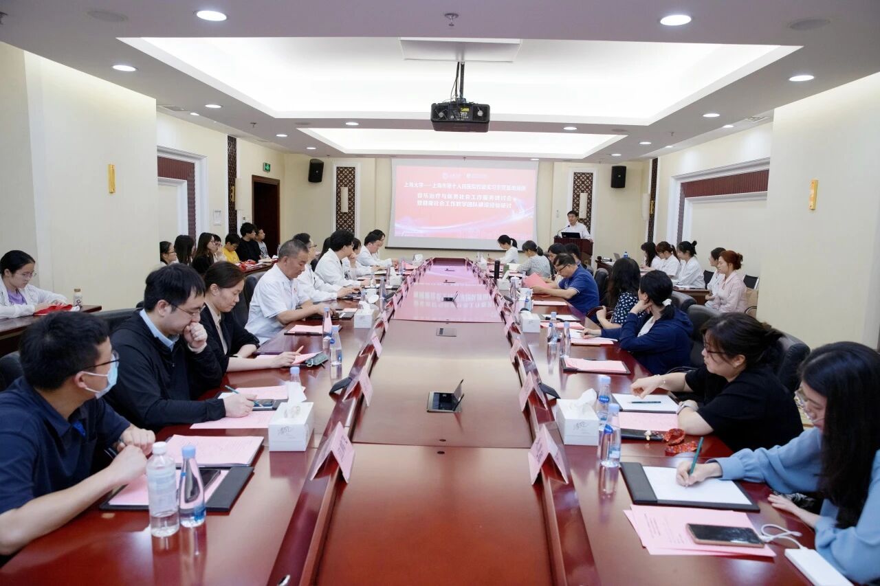 6月24日,上海大学—上海市第十人民医院校级实习基地揭牌仪式在十院举行,并且开展了音乐治疗与医务社会工作服务研讨会暨健康社会工作教学团队建设经验研讨会。上海大学社会学院党委书记杨锃、社会工作系主任程明明、范明林教授等师生代表和上海市医务社工专家代表出席活动。十院院长沈兵携职能部门和医护代表参加活动。