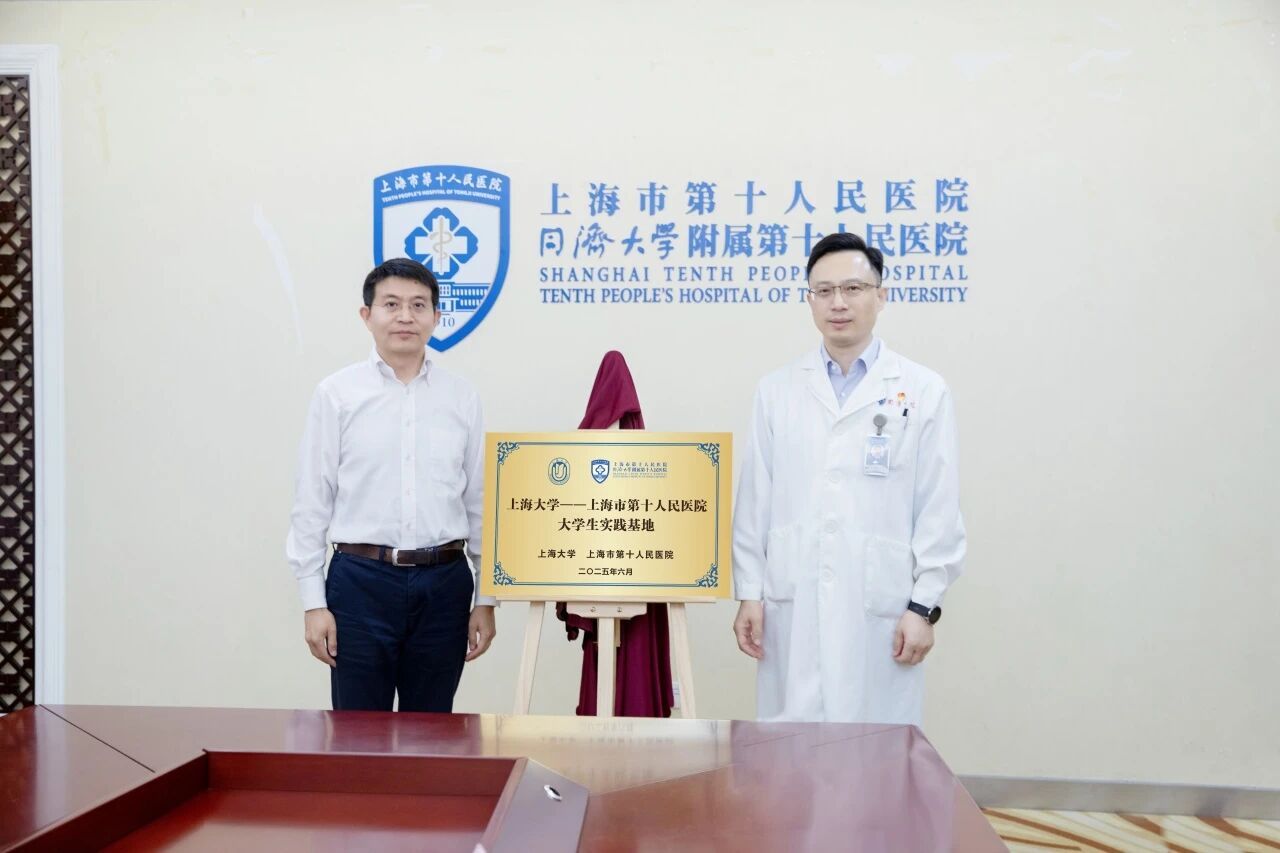 沈兵院长与杨锃书记共同为“上海大学—上海市第十人民医院大学生实践基地”揭牌,标志着双方合作进入新阶段。