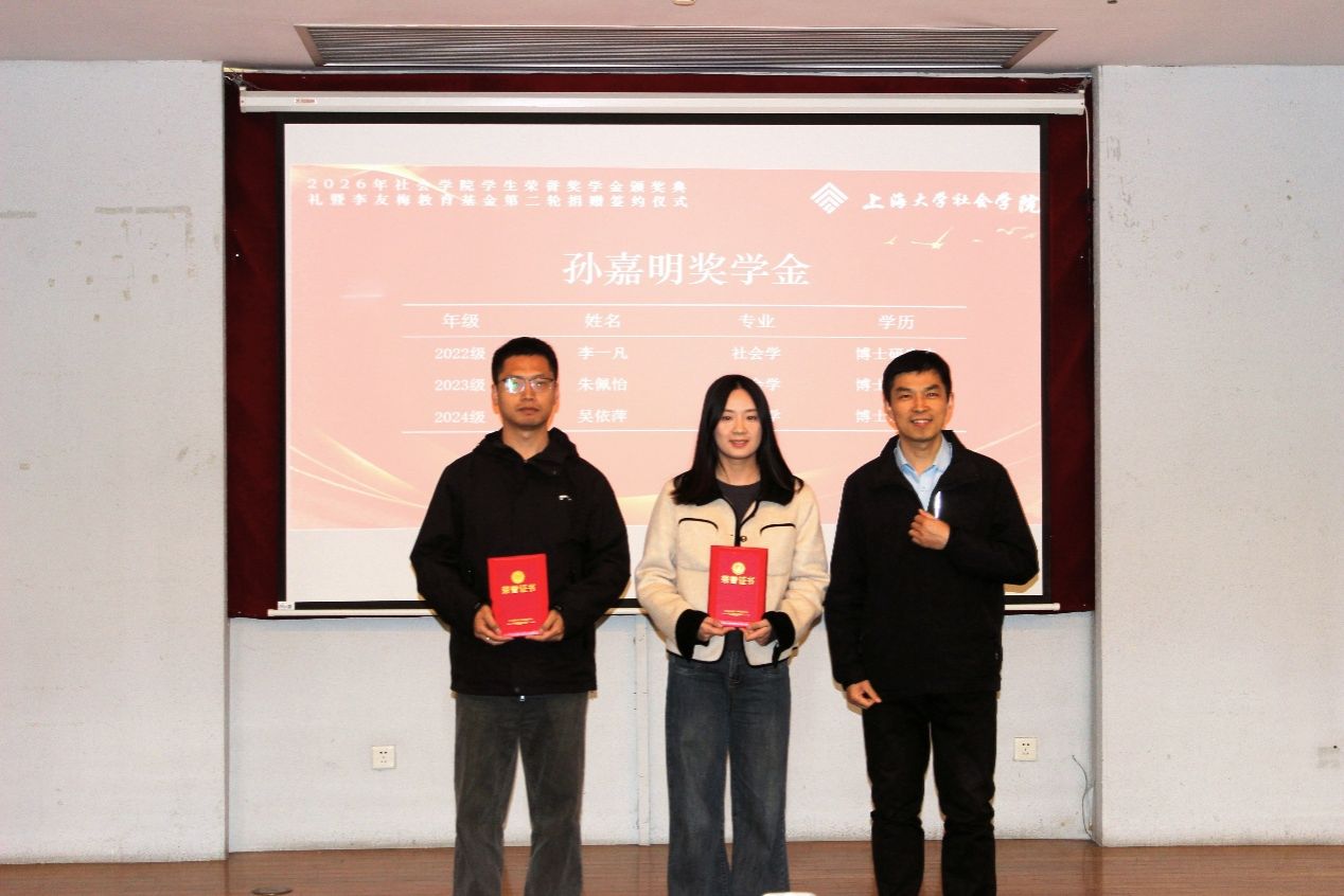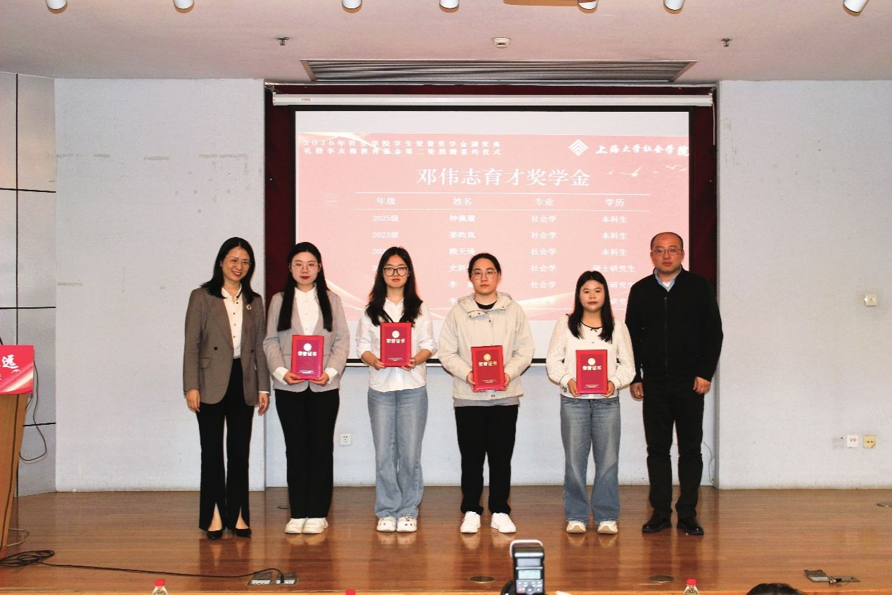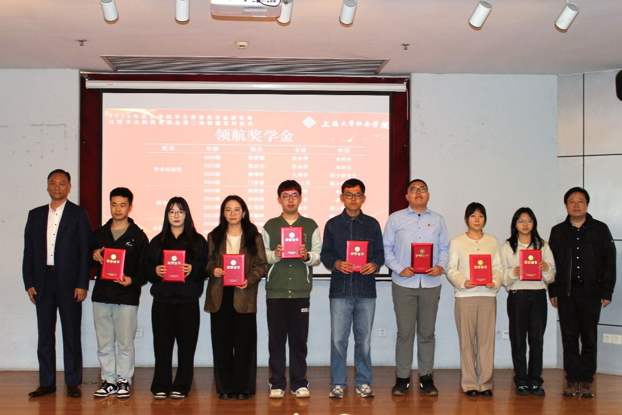 四月春深,万象更新。为强化榜样引领效应,营造崇学尚优的良好氛围,激励社院学子不断进取、全面发展,4月17日下午2点15分,社会学院于上海大学行政楼报告厅隆重举行2026年“榜样领航 砥行致远”荣誉奖学金颁奖典礼暨“李友梅教育基金”第二轮捐赠签约仪式。