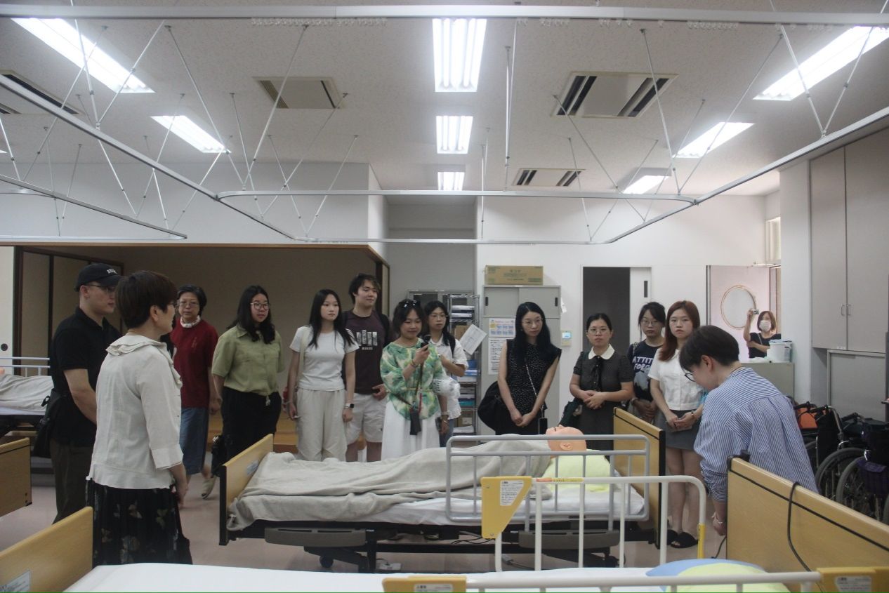 在共济病院,院长介绍设施和来院数据,并带领师生见学。通过与医院社工交流,研修团了解到日本医疗社工是医疗与社会之间的关键桥梁,负责就医动线翻译、家庭照护能力评估、整合多维资源等工作。