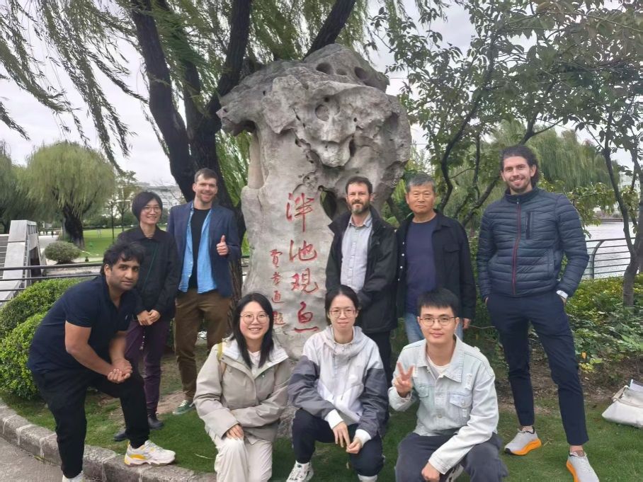 讲座之余,张敦福教授与Marius教授、Adrian教授以及同学们共同参观校园,并于泮池合影留念。