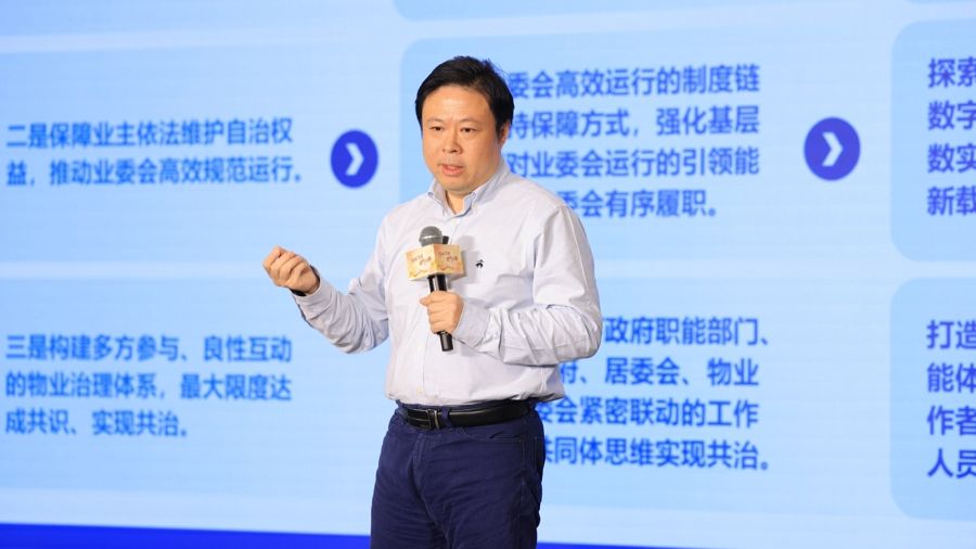 他指出:物业治理关系人民群众切身利益,是事关城市社会有序运行的基础性工作领域。有效提升物业治理效能,本质上要破解三个基础性问题:一是有效促进物业服务市场健康发展,实现物业服务供给高效优质。二是保障业主依法维护自治权益,推动业委会高效规范运行。三是构建多方参与、良性互动的物业治理体系,最大限度达成共识实现共治。这三个基础性问题紧密关联、互为因果、相互交织,构成现代城市物业治理面临的深层挑战。许多传统改革举措虽不乏亮点,但由于本质上采用的都是“头痛医头、脚痛医脚”的施策路径,因此往往按下葫芦又浮起了瓢。