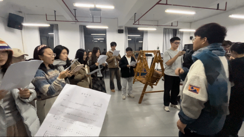 不同于传统意义上的合唱排练,本次备赛过程中,指挥杨佩宜同学并未局限于“把歌唱会”的基础目标,而是融入了丰富的声乐知识科普。从基础的发声技巧、气息控制,到合唱中的声部配合、音准把握,再到情感表达与舞台仪态的专业指导,指导老师会在每次排练中穿插知识点讲解。不少同学表示,原本对合唱的认知仅停留在“集体唱歌”层面,如今不仅掌握了正确的发声方法,还学会了分辨声部、理解和声编排,既为比赛筑牢了基础,也极大丰富了课余文化生活,实现了文艺素养与集体归属感的双重提升。